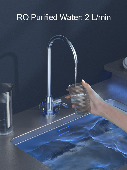 Comes with a 3-year lasting RO membrane with pore 0.0001 micron, removing viruses, bacteria, organic matter and heavy metals, delivering you pure water.